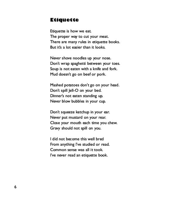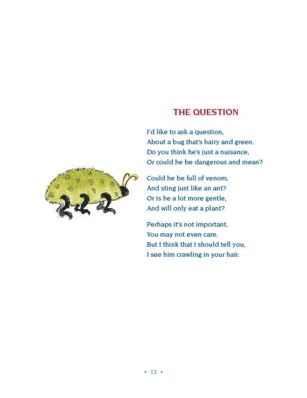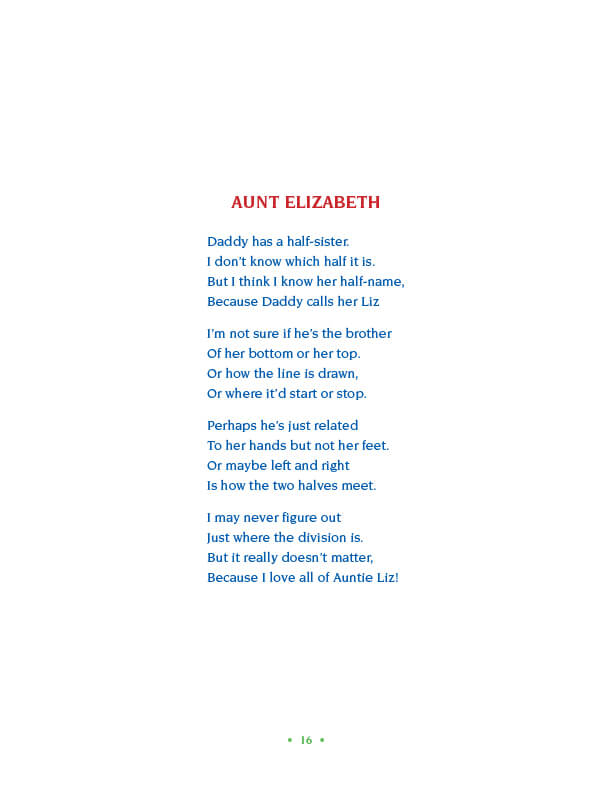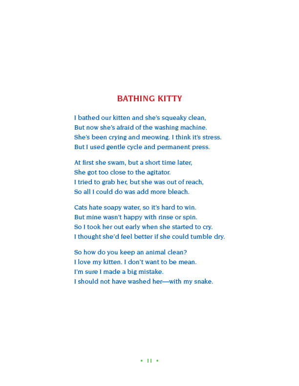 The humor, real life observations, and “gross them out” language immediately grab students’ attention. And then keeps them both mentally and verbally saying, “ I thought the same thing” and “I wondered about that too”. Your books are already checked out and there is a long list that will keep them circulating throughout the school year. You make loving poetry “cool” and writing it easy.