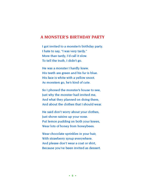 Kids have gone crazy over your poetry. On Saturday morning they get to choose what they want to read. No contest, your books are always chosen. You have really helped me generate an interest in reading.
